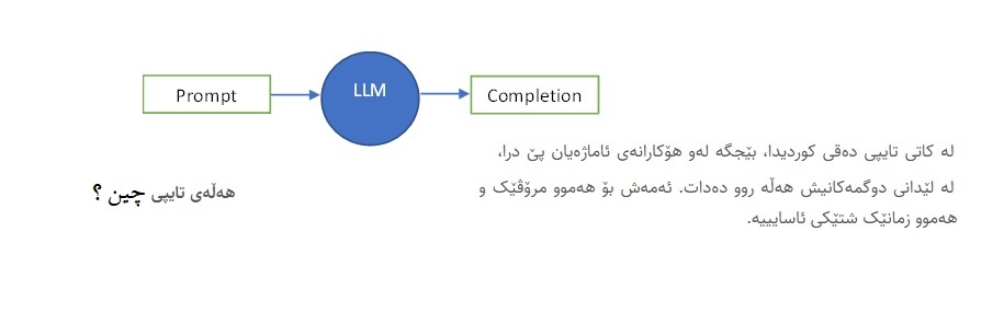 For example, to be able to use an LLM model, we give a Prompt question as input and it gives us a Completion as output.